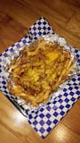 Layers of pasta, beef, and three kinds of cheese topped with tomato and sauce. (served with garlic bread)